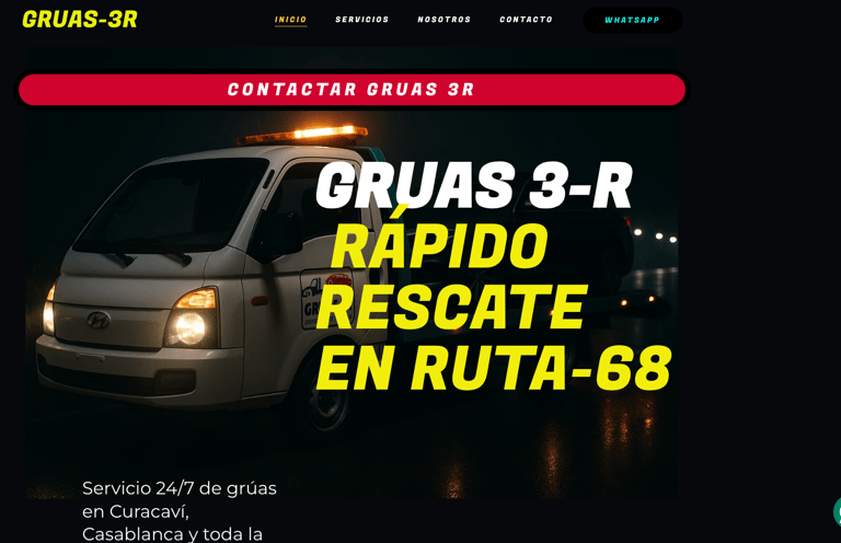 El Brujo Digital desarrolló una web optimizada para emergencias viales, destacando la rapidez y cobertura de Grúas 3R en Curacaví y Casablanca.