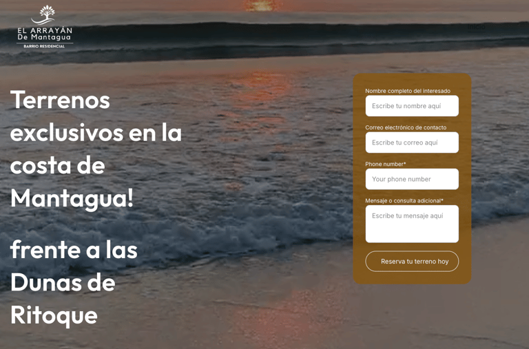 Desarrollo completo del sitio web inmobiliario, con formularios de contacto directo y una estructura moderna orientada a captar interesados en terrenos costeros.